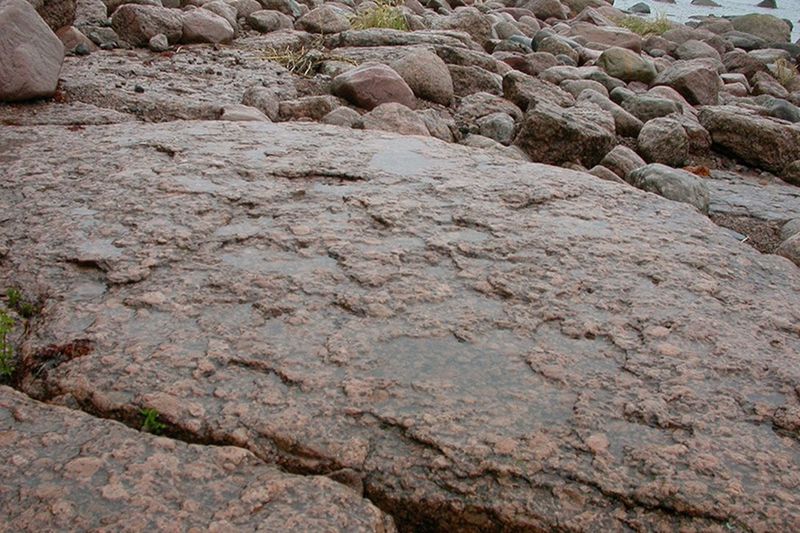Kallioperän kivilaji vaikuttaa myös elolliseen luontoon. Kuvassa rapakivi.