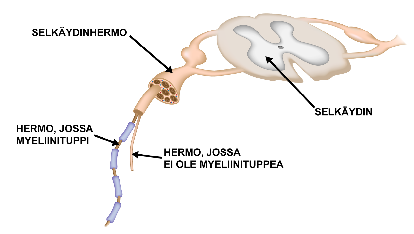 - Viejähaaraketta voi peittää myeliinituppi.